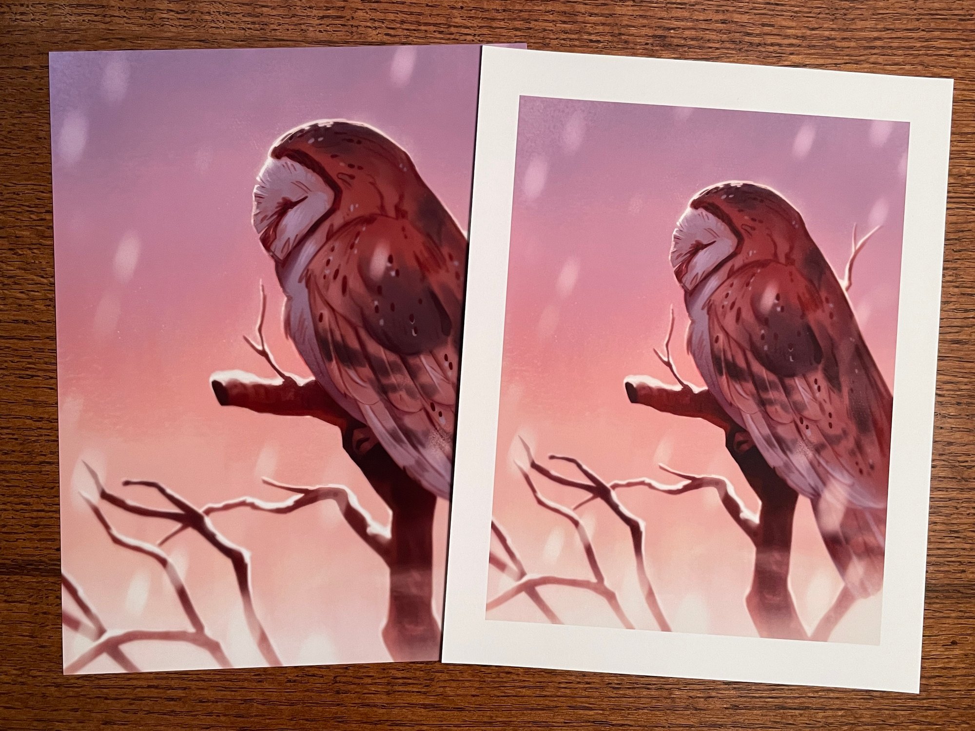 8.5" x 11" in size. Satin: Printed borderless on 68lb satin finish paper. Matte: Printed on archival watercolor paper with margins. Everything is made and shipped by myself.